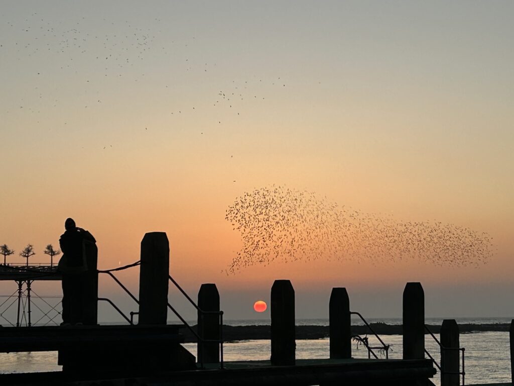 - ** We have been guided by the Charity Commission in using the word ‘sangha’ to describe our organisation, as this is the most widely understood western terminology for a Buddhist community. As we are not a formal part of a Buddhist school, we are not a sangha in the traditional sense (i.e. a community of monks and nuns within an established lineage or the wider ‘community’ of enlightened beings). Technically we count our community as a ‘parisa’ (‘an assembly of the Buddha’s followers).CIO = Charitable Incorporated Organisation.Charity Details: Registration no: 1205476, 31st October 2023. Contact email: emg1sta@yahoo.co.uk. Enjoy some photos of Aberystwyth below – beach at sunset perfect for walking meditation while admiring the starling murmurations!
